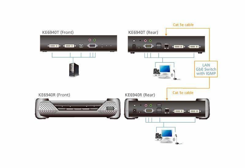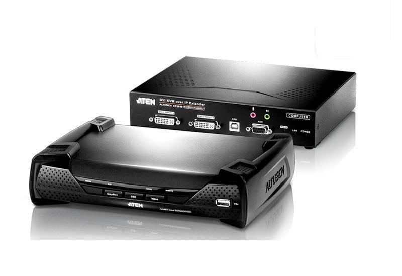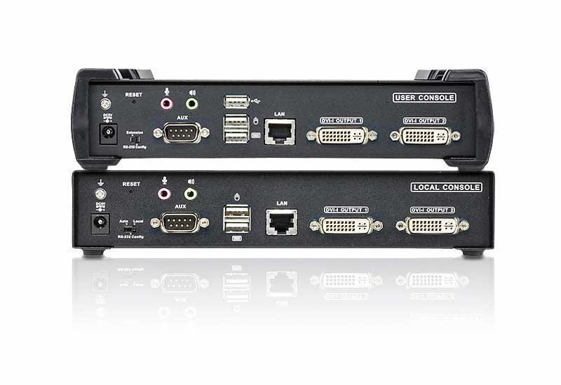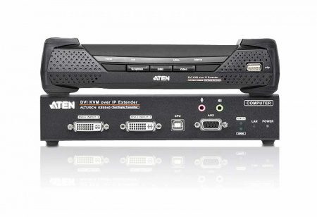 IP KVM+Audio+RS232+USB удлинитель c двумя портами видеоинтерфейса DVI и передачей данных по сети Gigabit Ethernet — Aten KE6940-AX-G